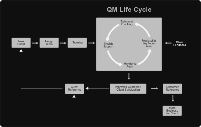 Process audit, internal feedback sessions, client feedback sessions, follow-up and continual improvement are regular activities.